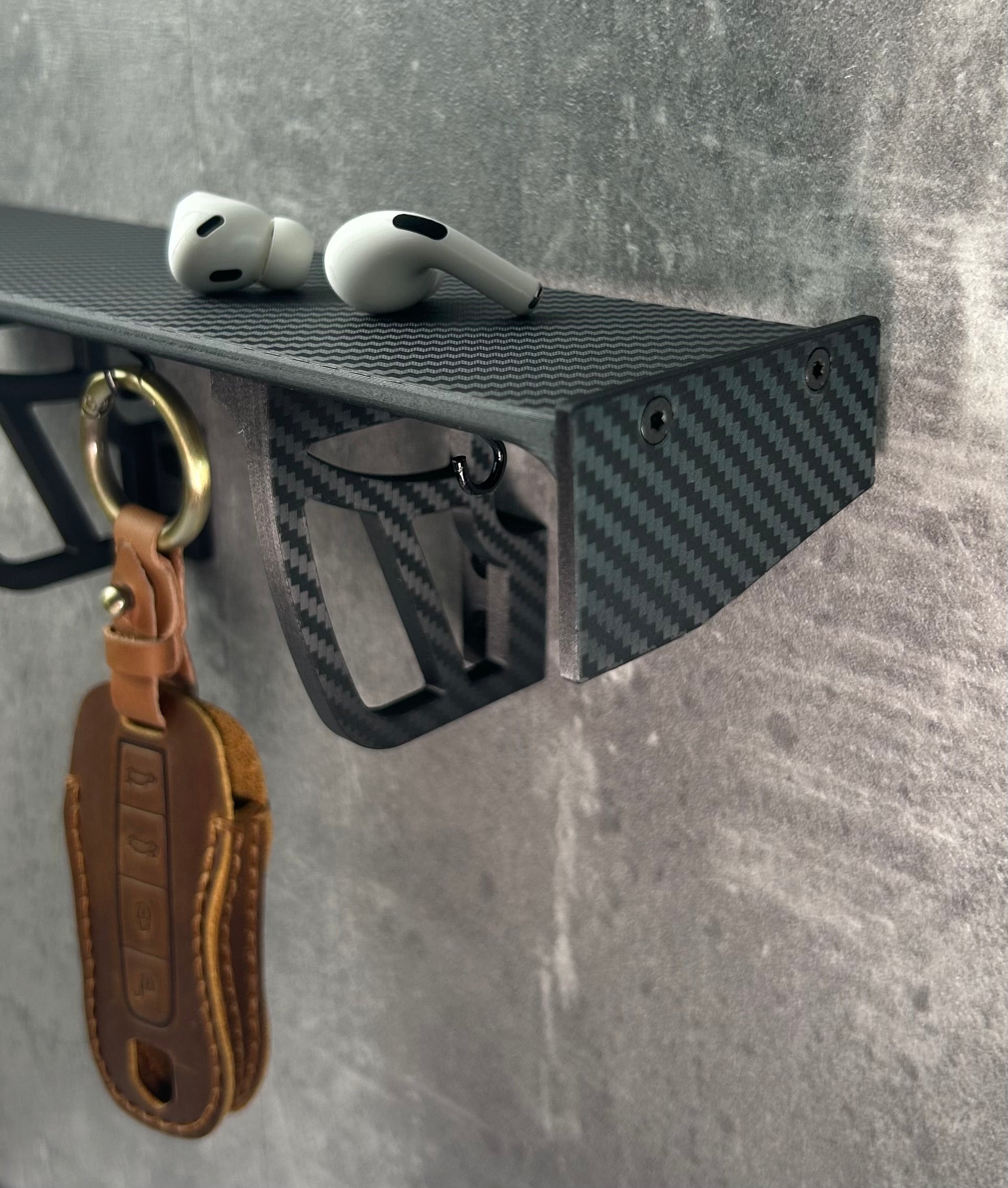 Spoiler Shelf, Spoiler Photo Holder and Spoiler Key Rack – three design pieces that create a cohesive design language and unite motorsport aesthetics with a refined home ambience.